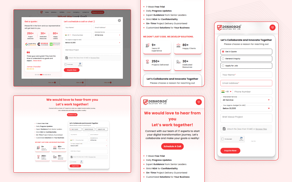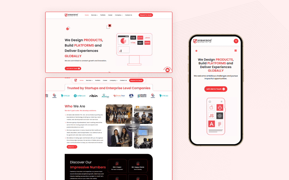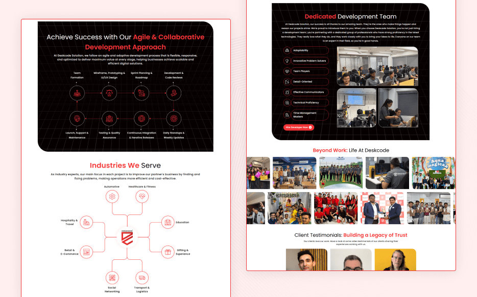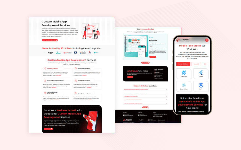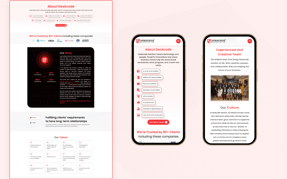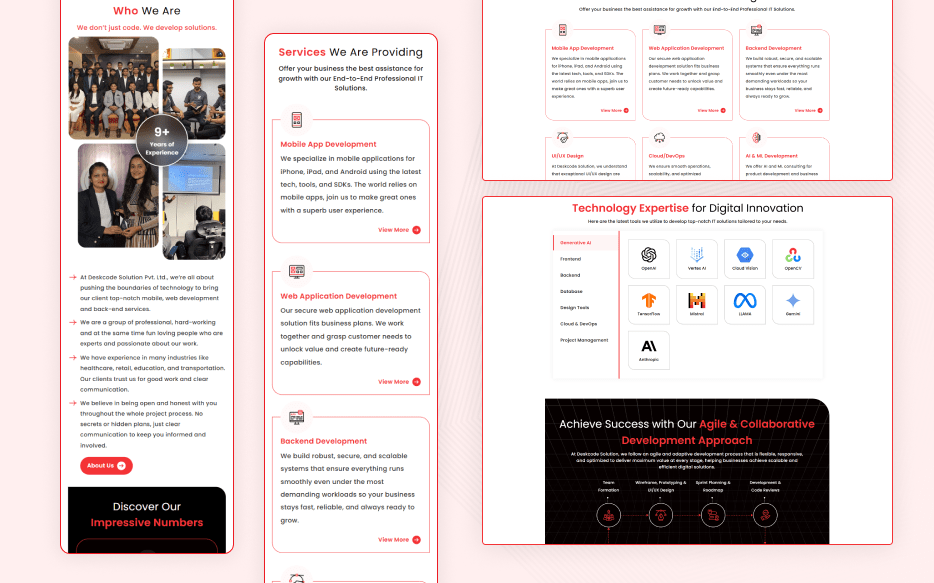 DeskCode Solution approached us with a clear vision: a large, multi-section website reflecting their brand identity while performing flawlessly across all devices. The client provided the design, which featured multiple pages, rich images, and extensive content. Their requirements included a fast-loading, SEO-friendly, fully responsive site and a backend that allows complete management from the admin panel without relying on any page builder.