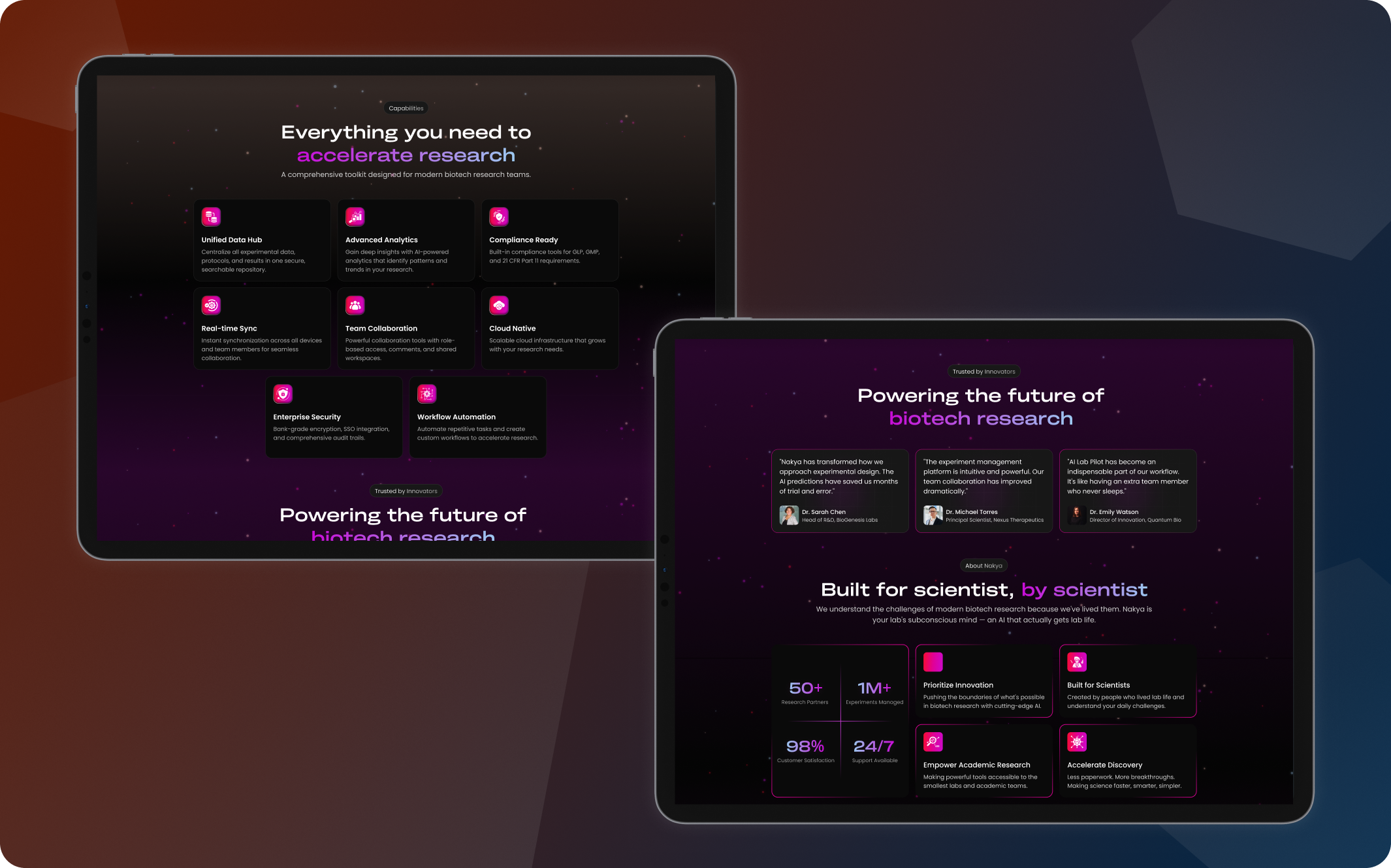 A modern and conversion-focused website for Nakya Biotech, designed to present its biotechnology services and research expertise with clarity. Built to enhance credibility, user engagement, and professional digital presence.