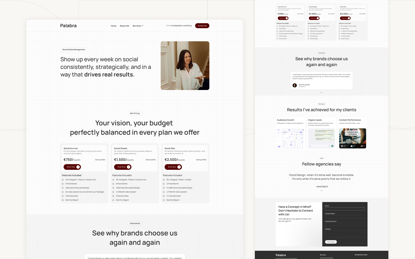 The result is a sophisticated, high-performing website that elevates Palabra Marketing’s brand presence and enhances user engagement. With a streamlined user journey and conversion-focused structure, the platform is now positioned to generate quality leads while giving the client complete control over content and growth.