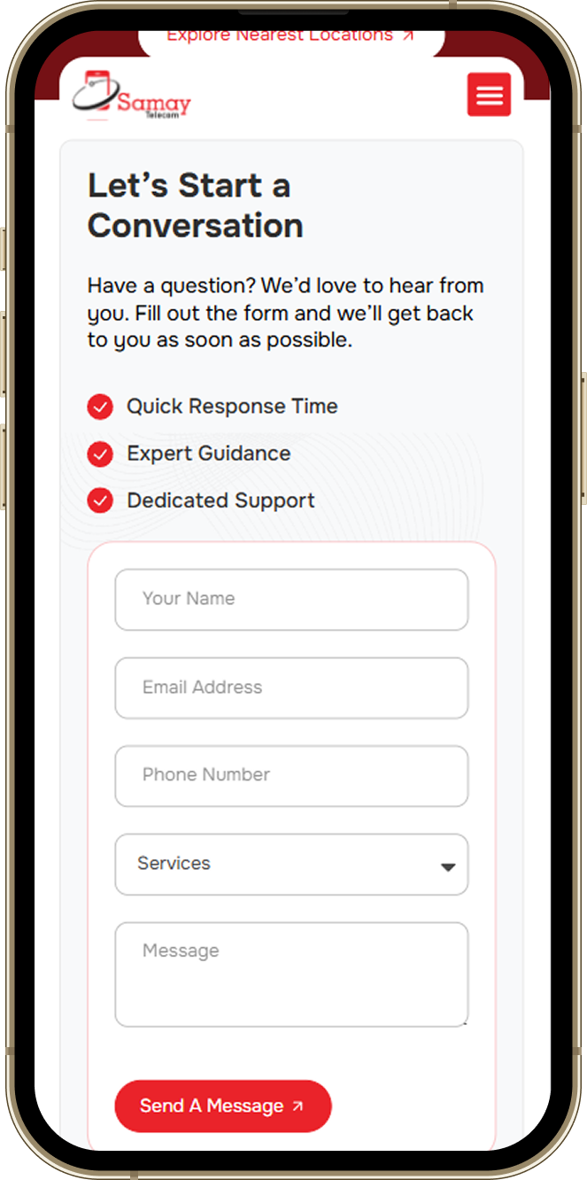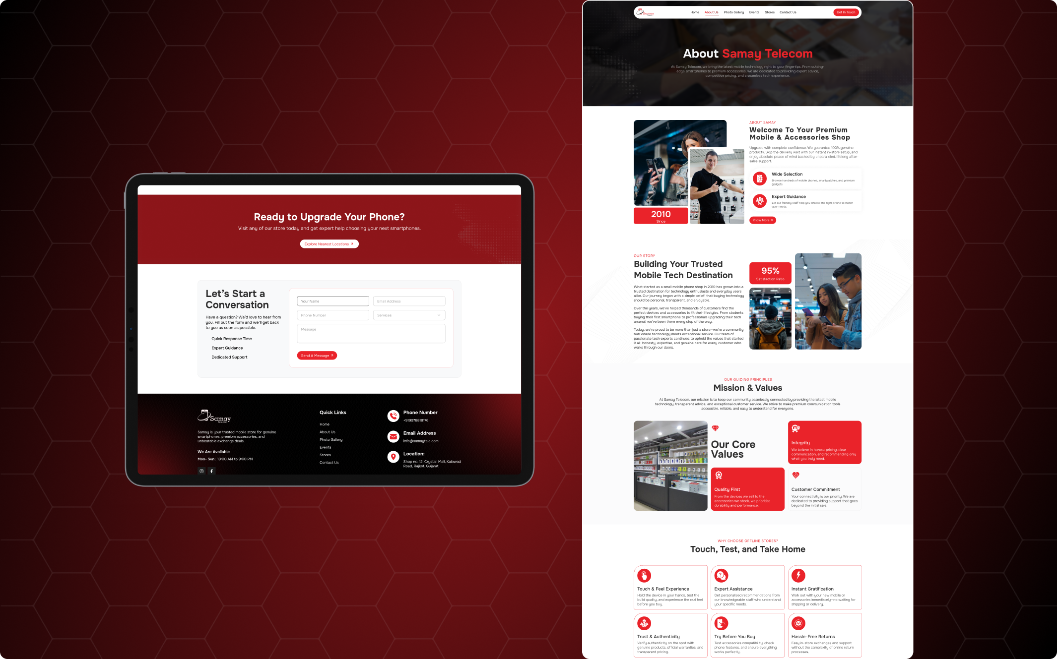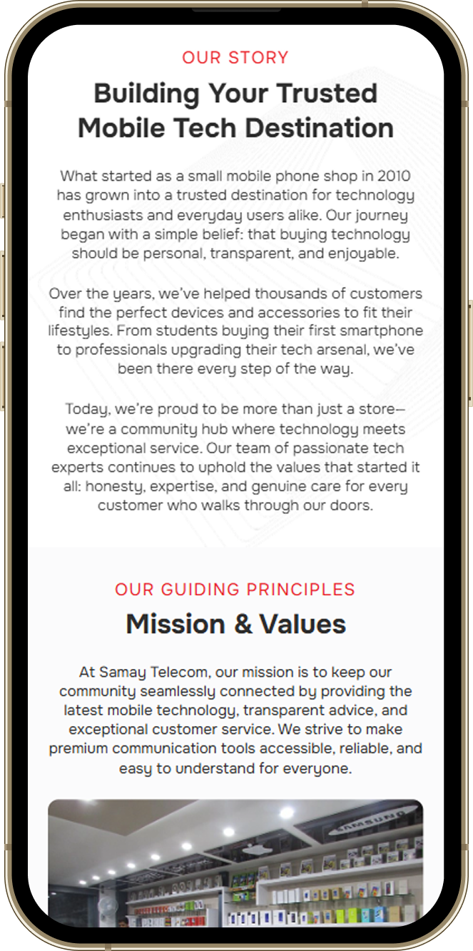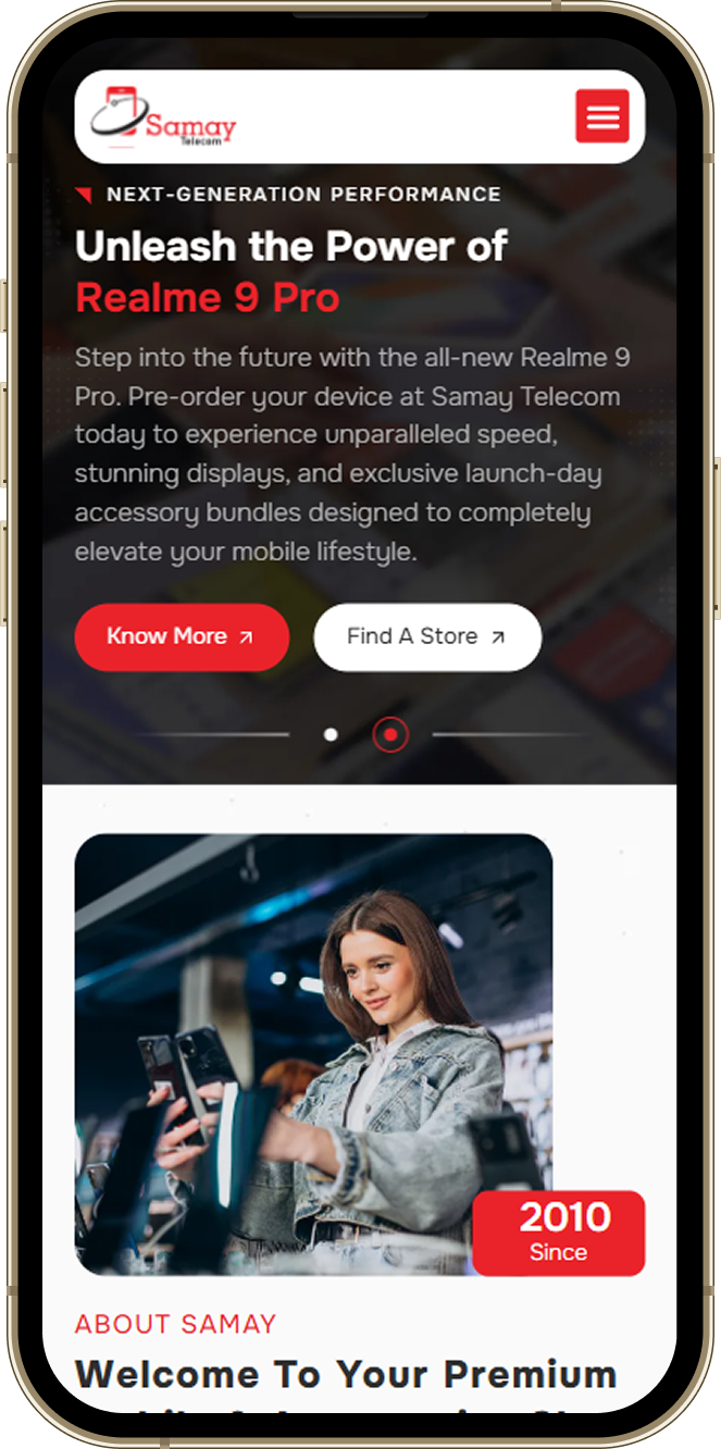The result is a refined and professional digital platform that establishes Samay Telecom’s online presence with confidence. With a fast, responsive, and SEO-optimized foundation, the website effectively communicates trust and encourages customers to visit physical store locations.