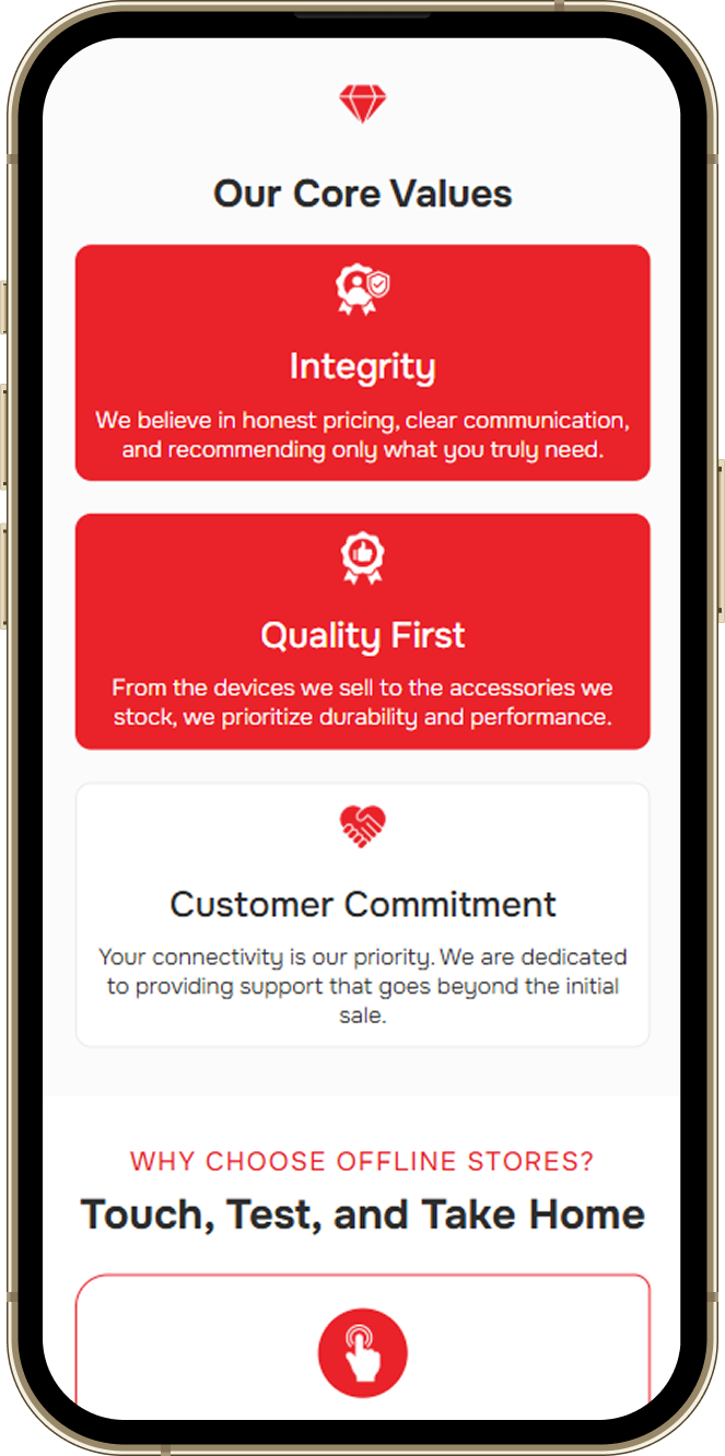 As a first-time website, the challenge was to translate an offline retail business into a clear and impactful digital experience. It was essential to present services, trusted brands, and store locations in a structured way while ensuring a seamless and engaging user journey.